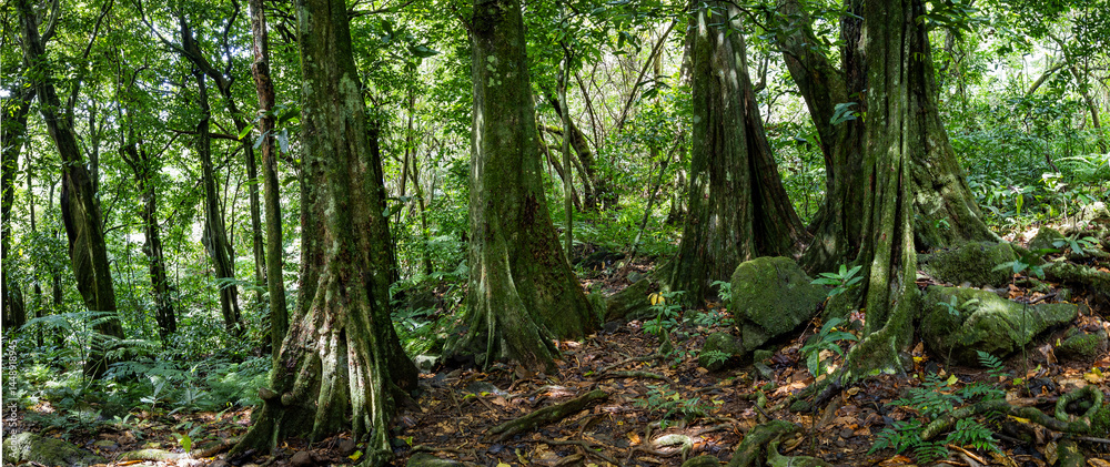Jungle view with large trees in Tahiti panoramic