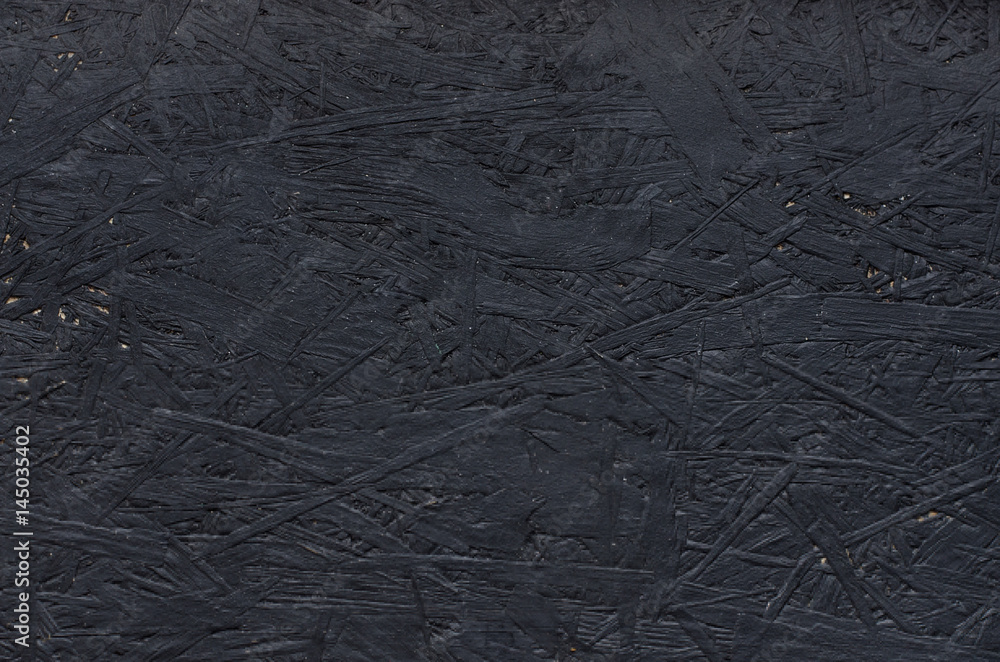 Black chipboard also called particleboard. Background texture.