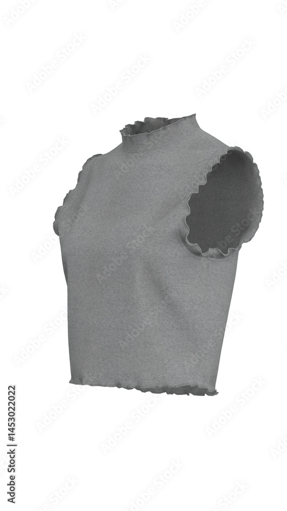 Gray Sleeveless Crop Top | Soft & Stretchy Fabric with Ruffled Edges