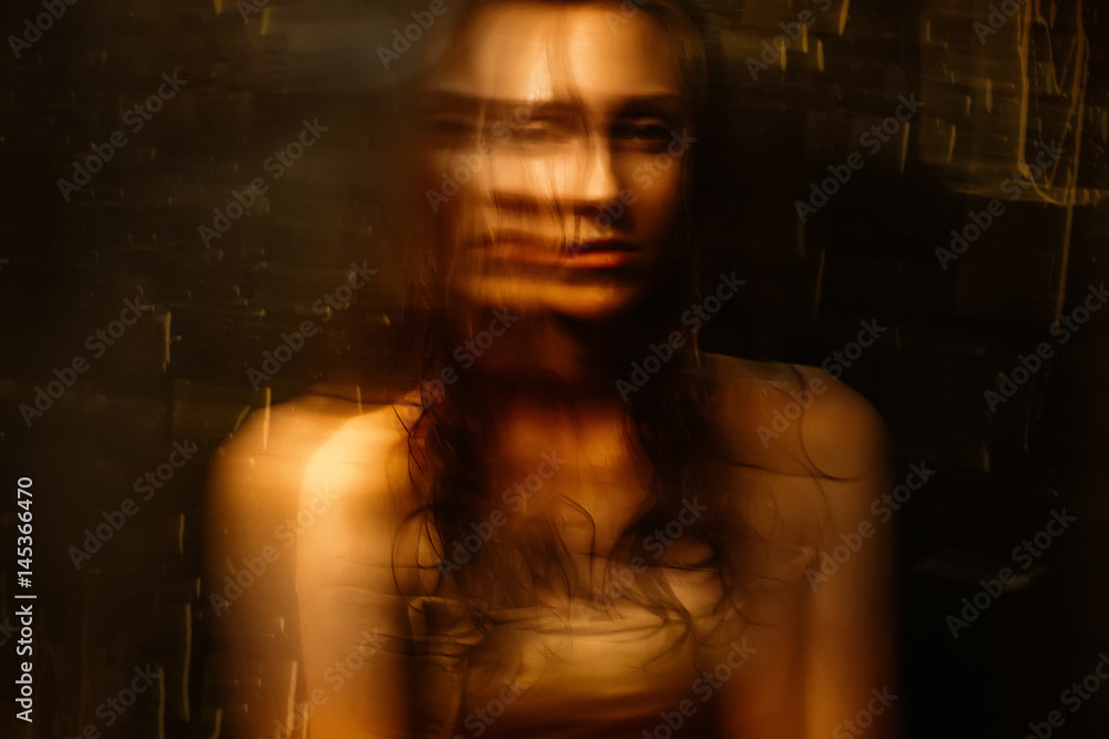 Portrait of Beautiful girl with wet hair and bare shoulders with blur