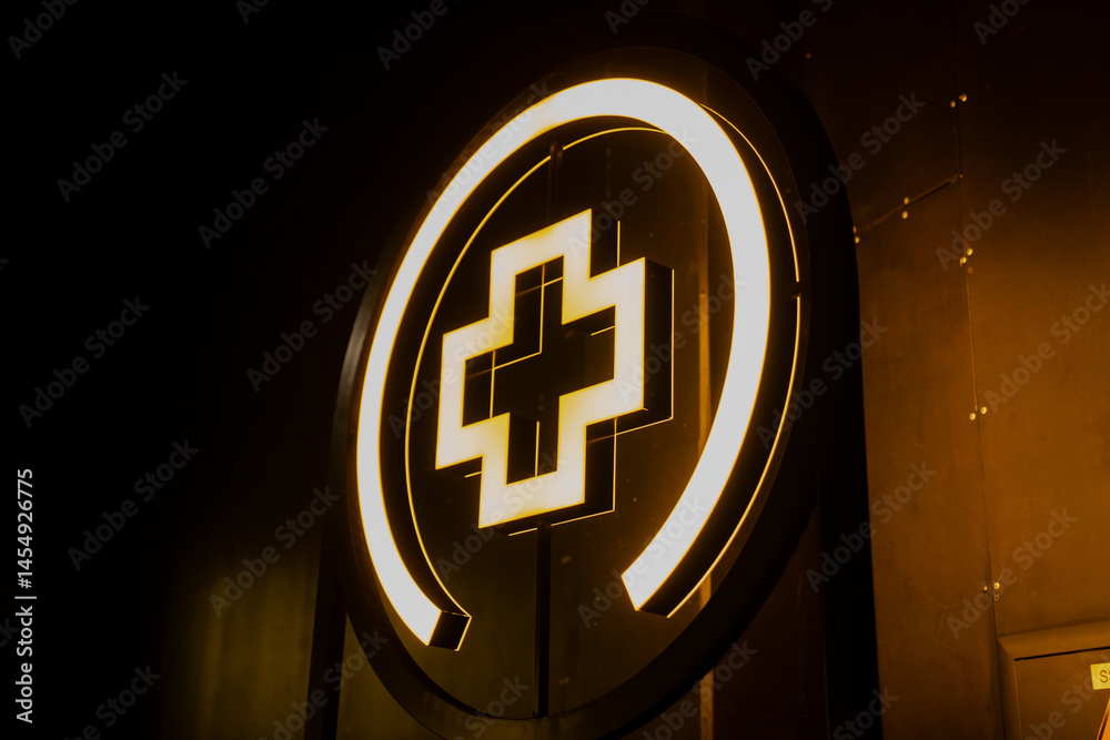 Medical neon style pictogram side view symbol for medicine or pharmacy