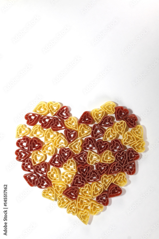 Heart shape pasta on white background
