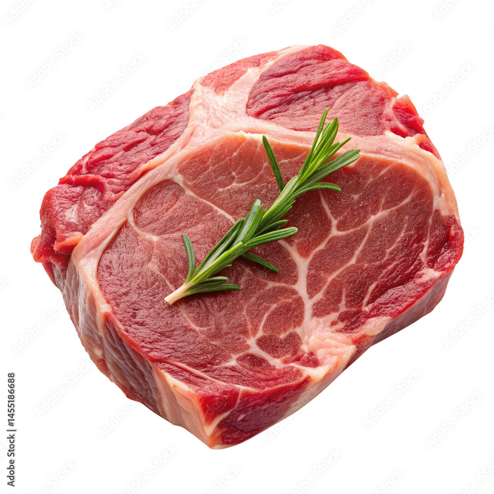A Raw Beef Steak with Fresh Rosemary Sprig Ready for Grilling or PanSearing