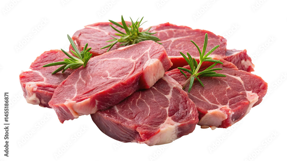 Fresh Raw Beef Steaks with Rosemary Garnish Ready for Cooking Delicious and Juicy Meat