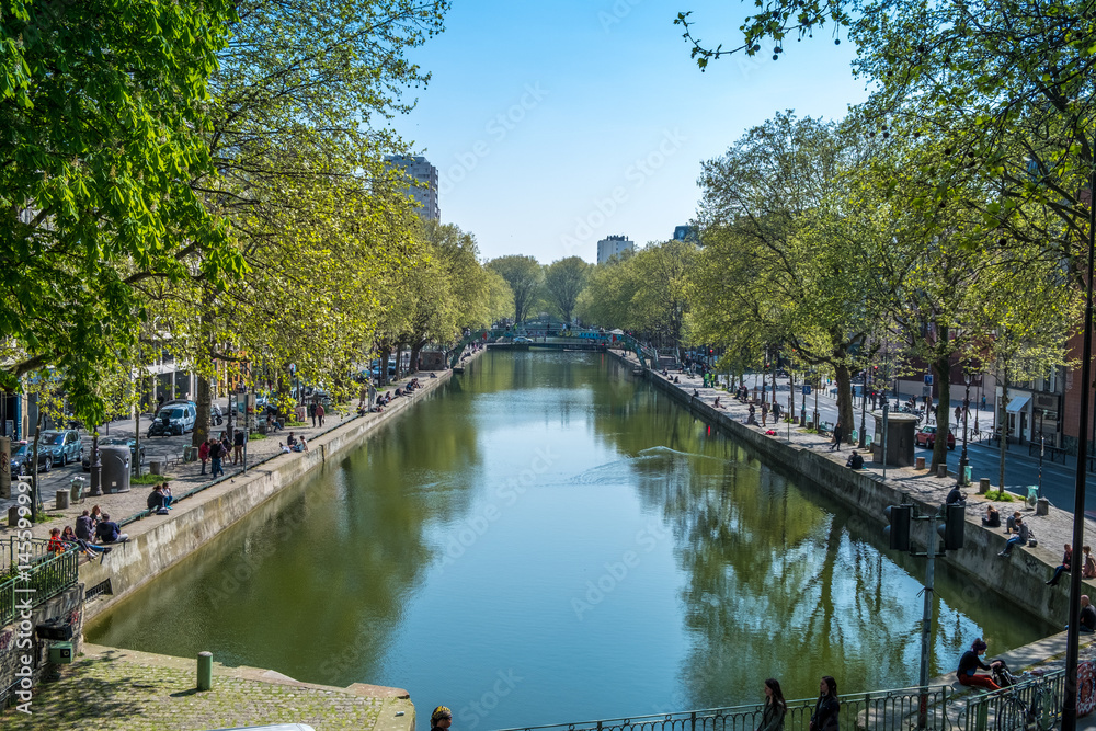 PARIS, FRANCE - APRIL 7, 2017 - St Martin's canal in Paris X district