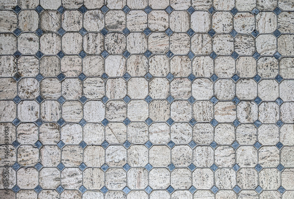 Geometric floor tiling featuring blue diamond shaped stones arranged in seamless repeating pattern, ideal for textural backgrounds