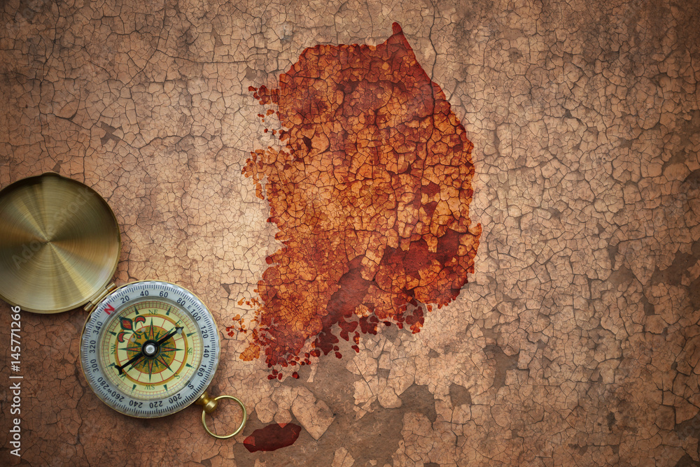 map of south korea on a old vintage crack paper