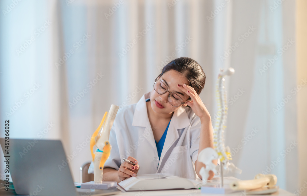 Asian Medical Student Studying Anatomical Model.