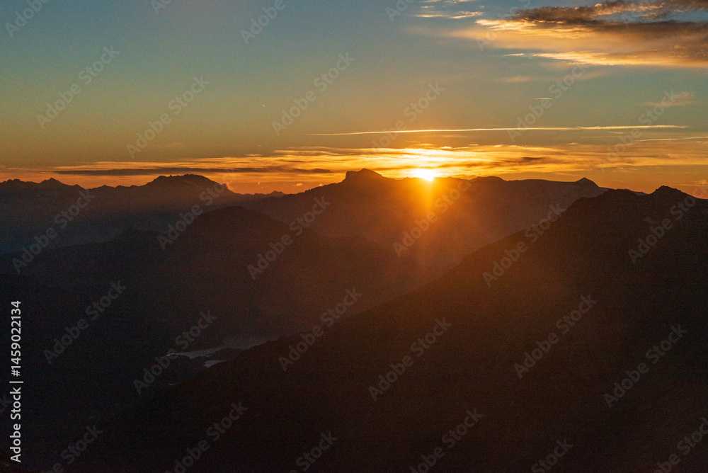 Sunset from Rocciamelone mountain peak in Graian Alps in Italy
