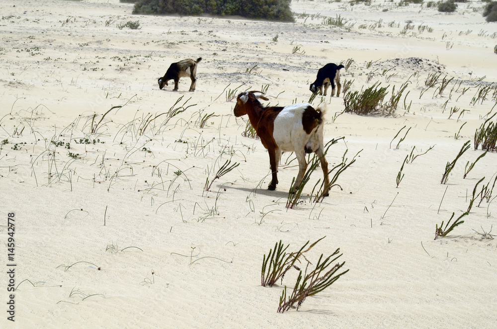 Spain, Canary Island, Fuerteventura, goats in desert landscape