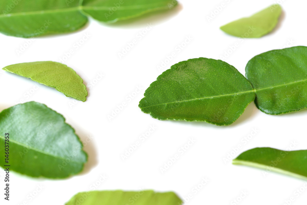 Kaffir lime leaves on white background - isolated