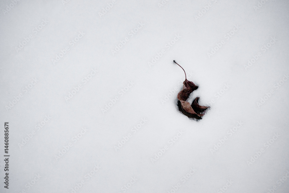 쌓여있는 눈위로 삐져나온 나뭇잎과 가지.