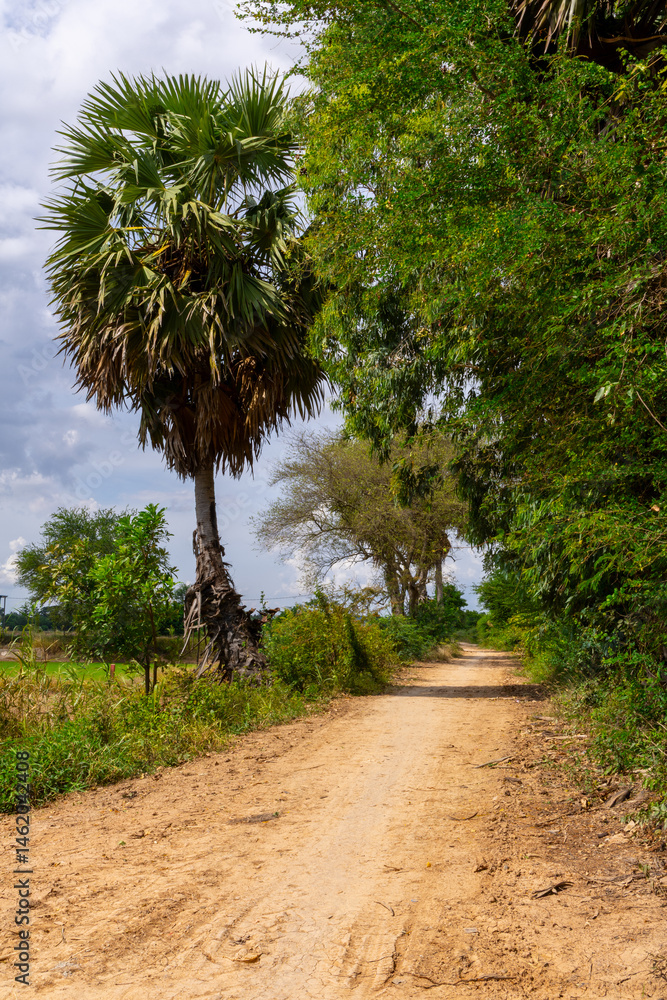 Sunny Dirt Road Through Lush Tropical Trees