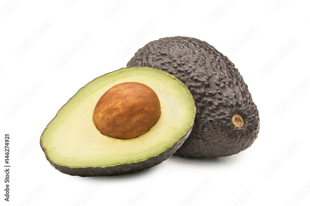Avocado on White Background with Half Avocado