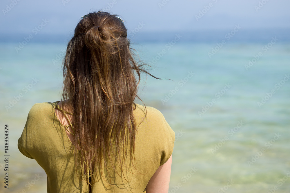 junge hübsche frau von hinten vor dem Gardasee - Italien