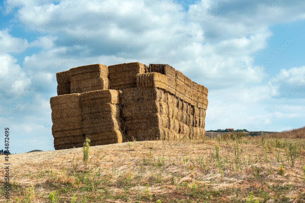 Haystack on the Sienese hills between the fields after the harvest