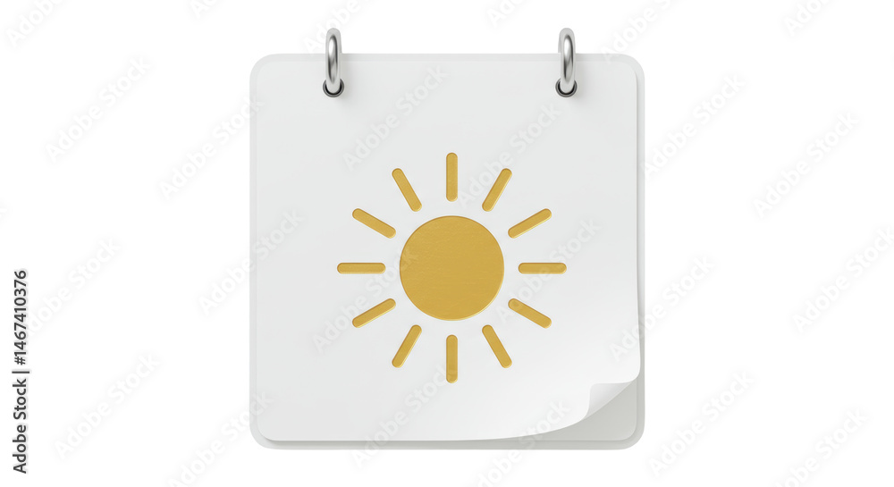 Isolated Calendar Page with Sun Symbol Marking a Sunny Day