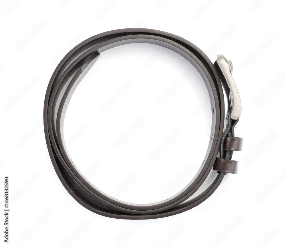 One brown leather belt isolated on white, top view