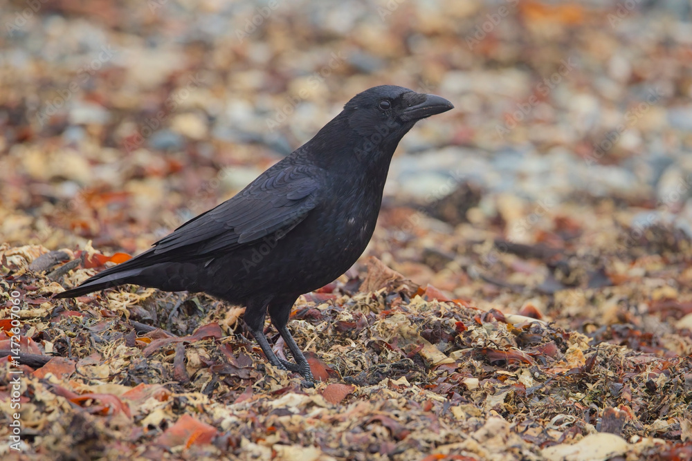Carrion Crow (Corvus corone), on the beach at Marazion, Cornwall, UK.