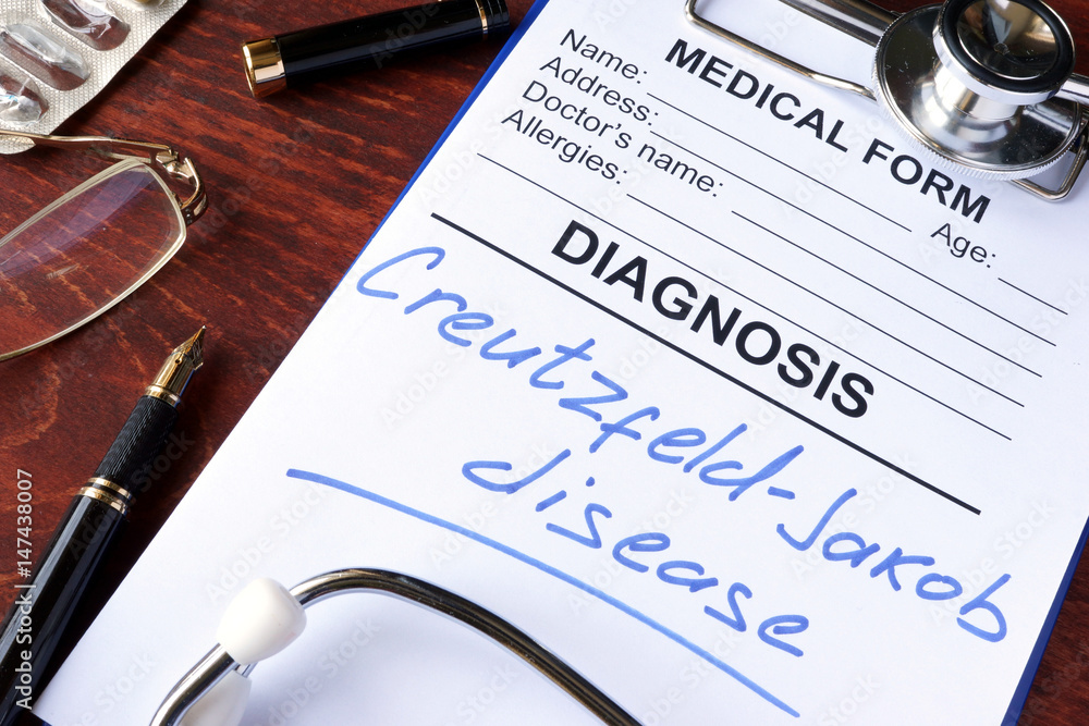 Medical form with diagnosis Creutzfeldt-Jakob disease in a hospital.