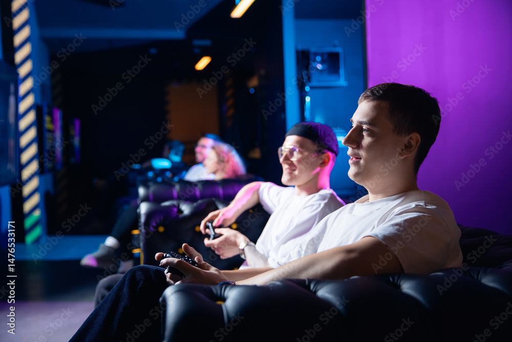 Diverse group of young adult friends engaged in esports gaming session