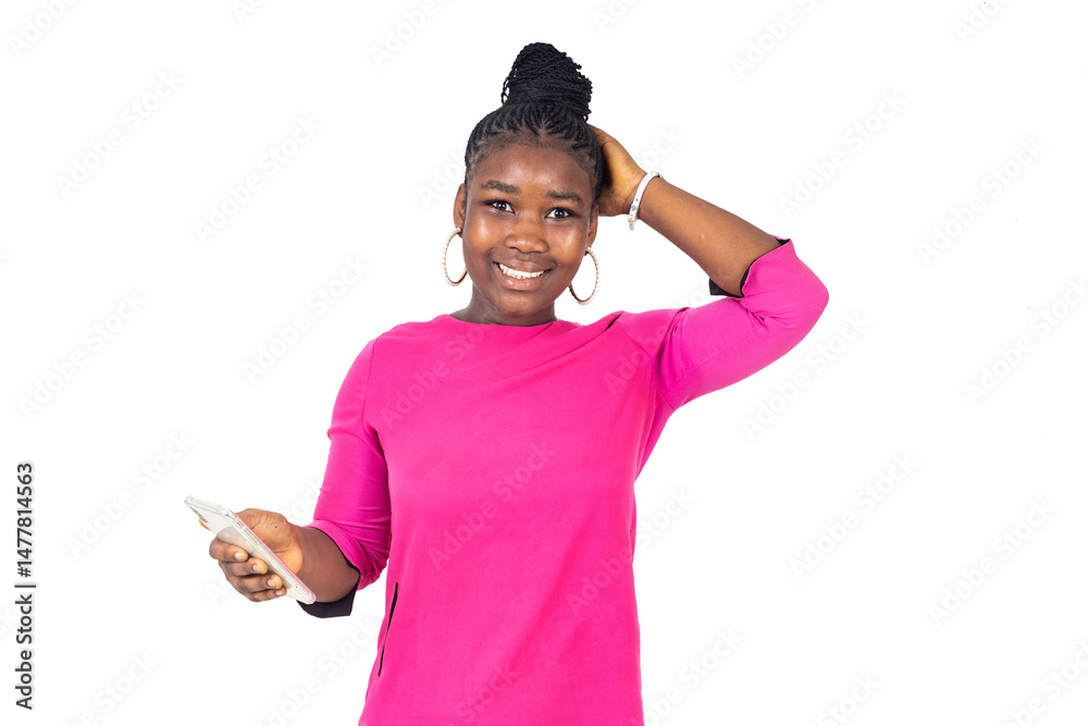 close-up of a young girl holding cell phone smiling.