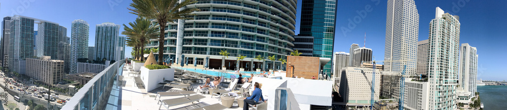 MIAMI, FL - FEBRUARY 2016: Panoramic view of Downtown. Miami attracts 15 million tourists annually