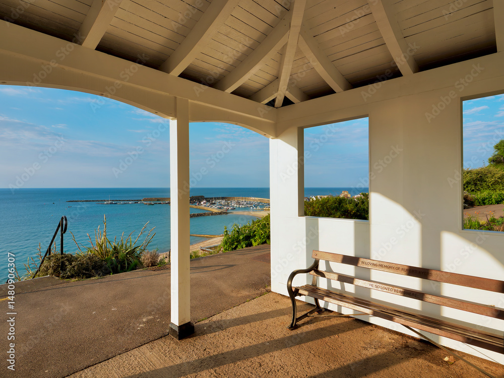 View of Lyme Bay from the public gardens at Lyme Regis on a sunny morning.