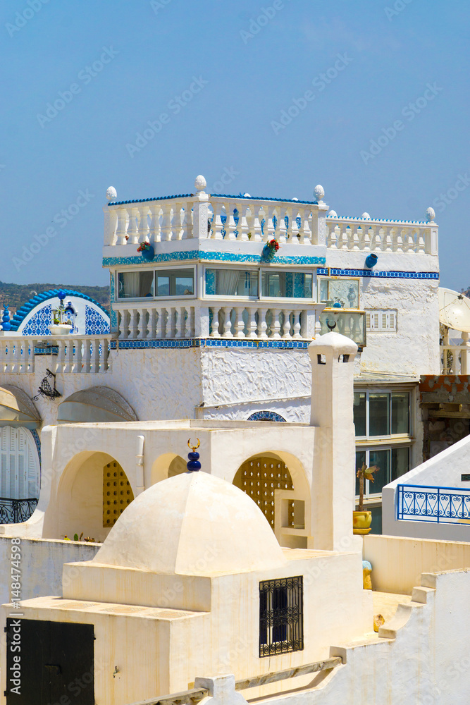 Über den Dächern der Medina von Hammamet in Tunesien im Sommer