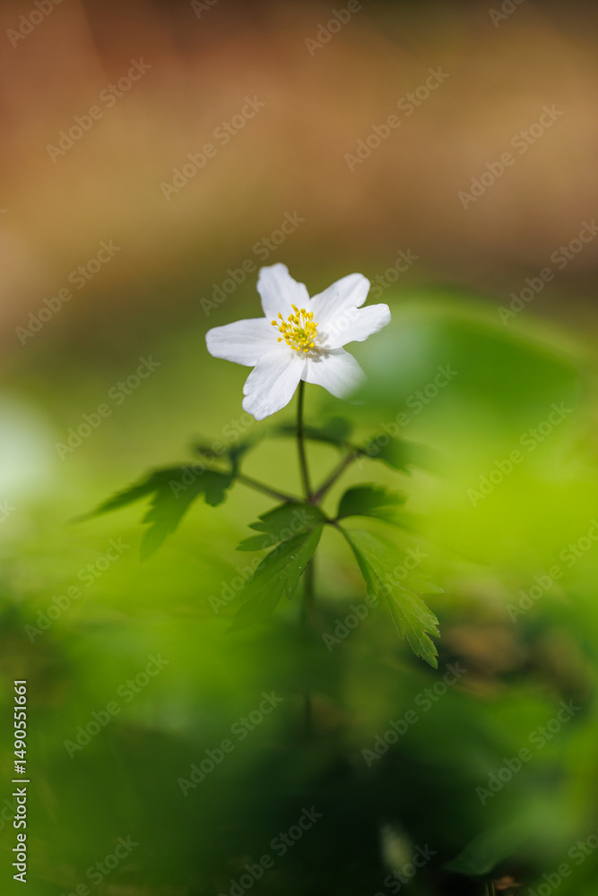 Closeup of anemone flower in forest at spring