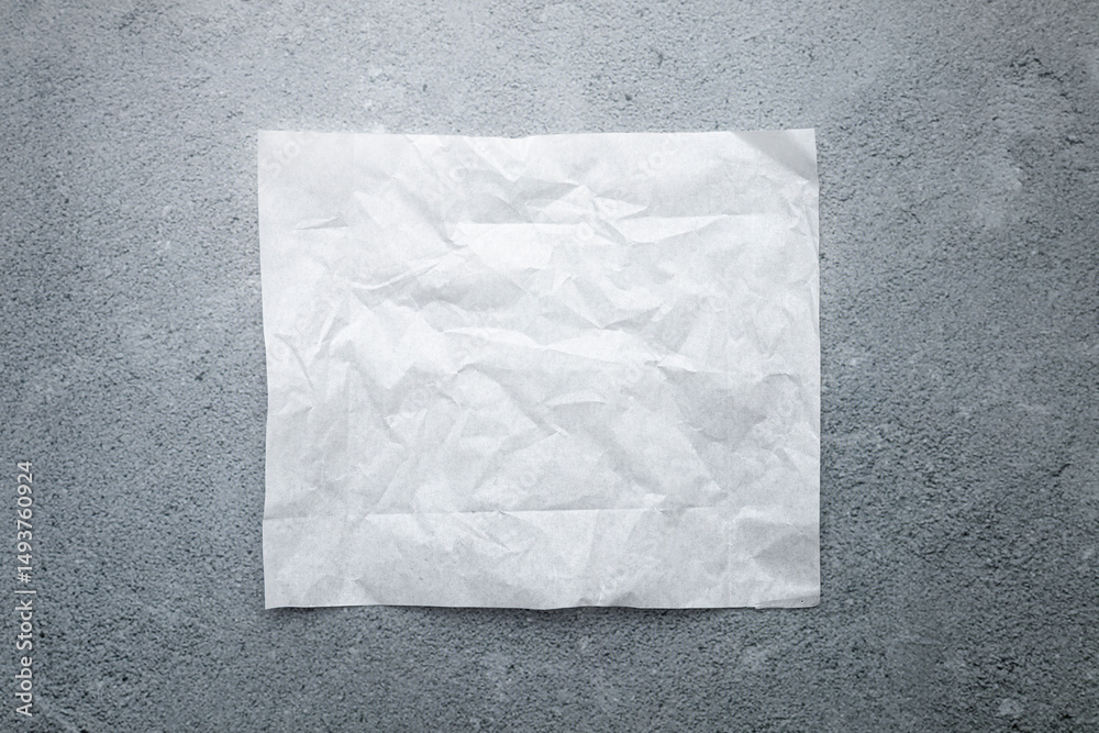 White square paper top view on stone grey background, food advertisement banner, frame. Product promotion,bakery sheet flat lay.