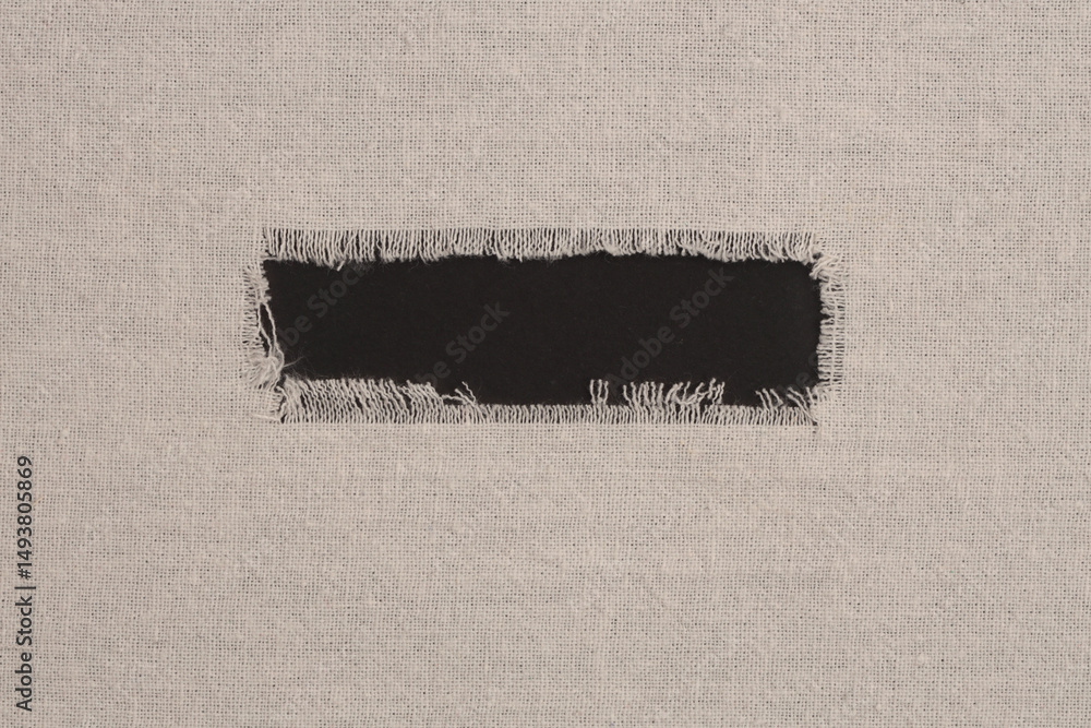 Grunge beige canvas denim fabric torn frame. Texture abstract background.