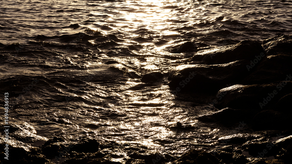Glistening waves of the Bosphorus catch the warm colors of a sunset