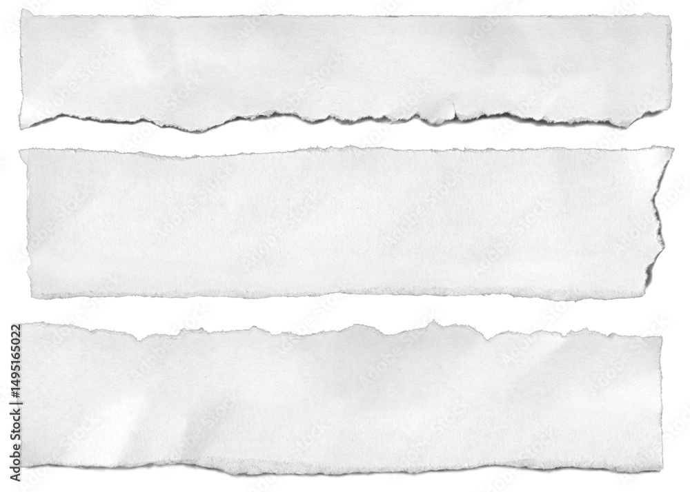 Crumpled strips of torn paper texture with ripped edges isolated for message background and note clipart.
