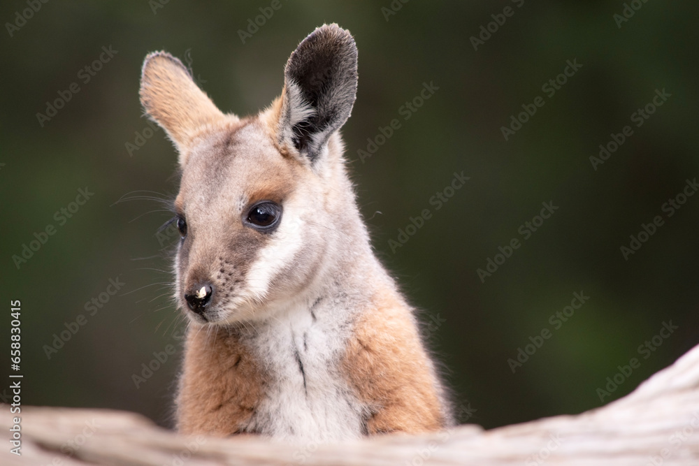the joey western grey kangaroo is in the forest