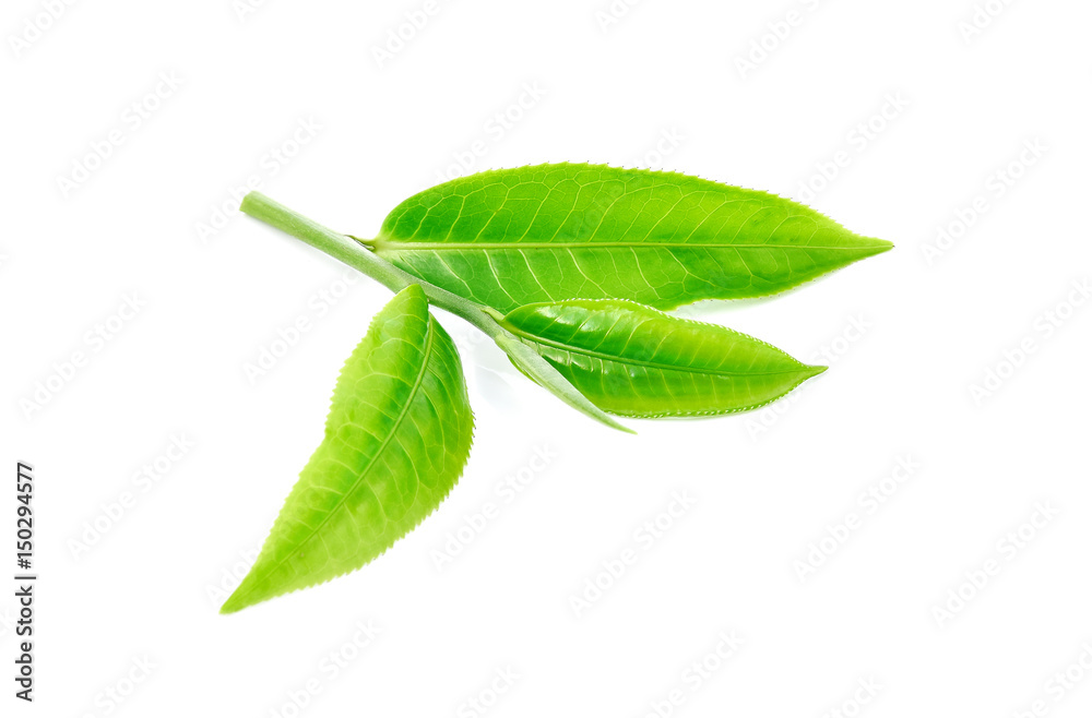 Green tea leaves isolated on white background