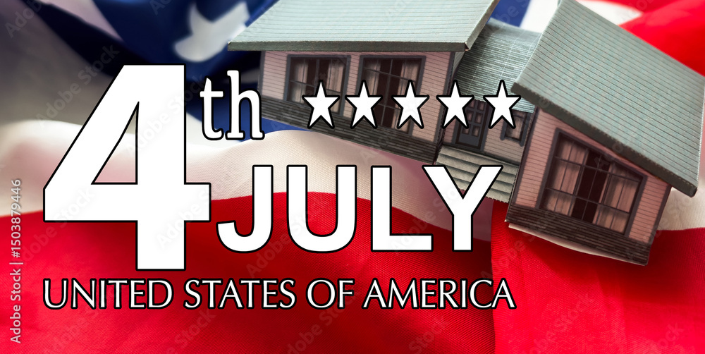 July 4 Independance day Patriotic Symbols USA. National celebration Fourth of July federal holiday United States. American flag Stars and Stripes Red, White, and Blue Old Glory Star-Spangled Banner