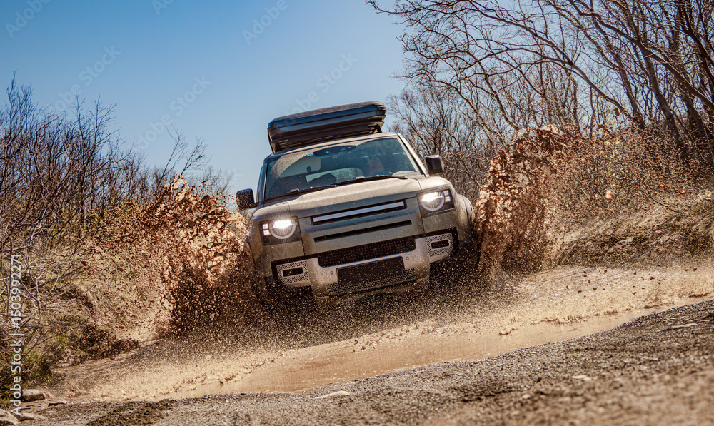 Off road tourist car rides off-road in the highlands.