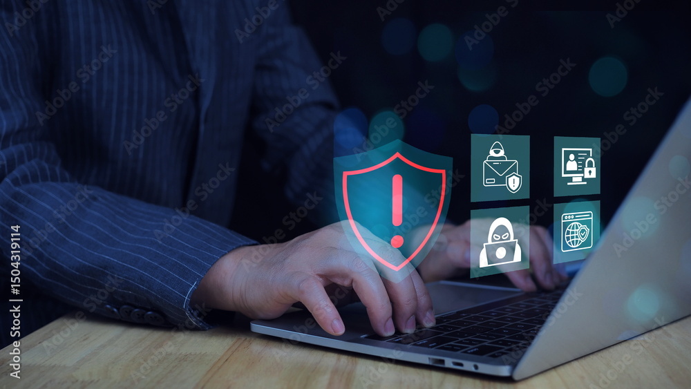 Network Security System Concept, Locked Key inside a Shield Guard to Protected Identify or Personal Information from Cyber Attacks