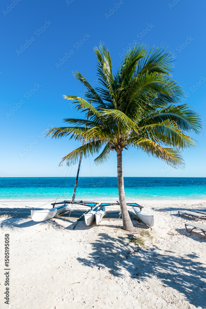 Сatamarans or Kayacats on a sandy beach on The Bahamas