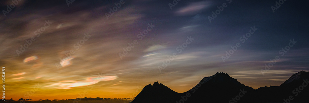 Polar stratospheric clouds glowing over Brunnhorn mountain, East Iceland...