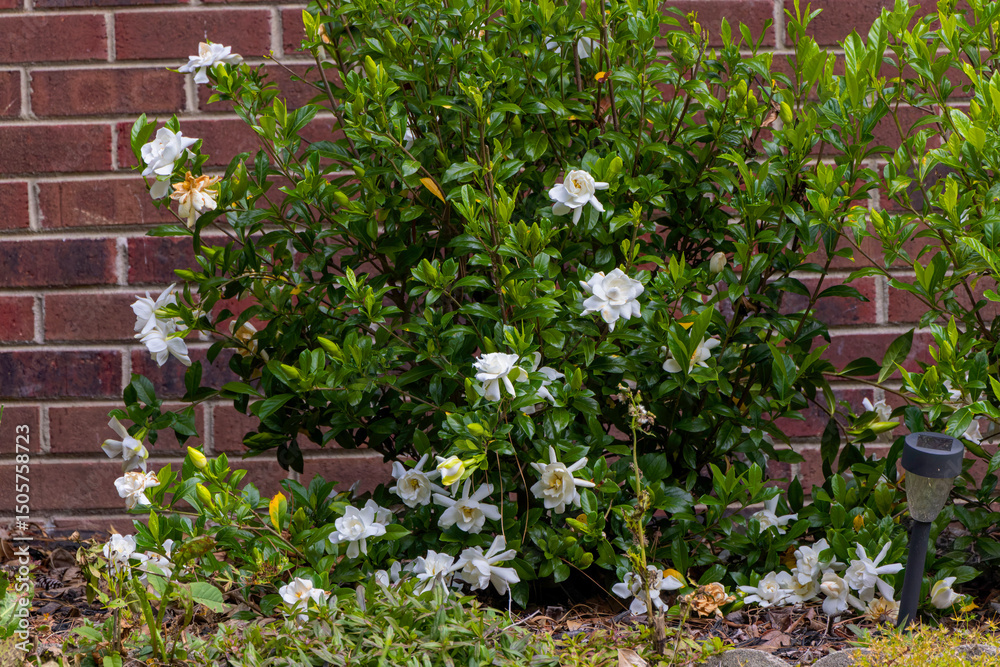 The cape jasmine (Gardenia jasminoides) commonly known as gardenia is an evergreen flowering plant . Shrub with its shiny green leaves and heavily fragrant white summer flowers.
