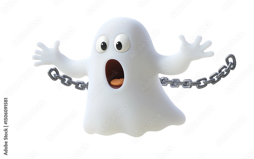 Haunted Animated Ghost Prop with Rattling Chains and Shocked Face Isolated on Transparent Background