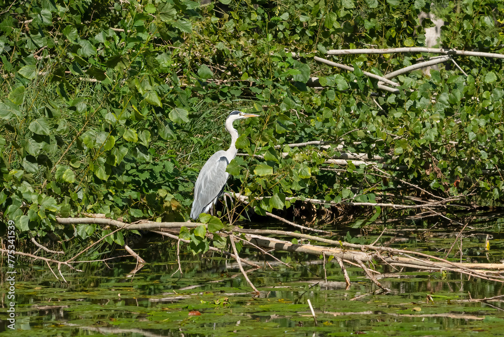 Green swamp with covered surface in the tropical humid jungle of the Yucatan peninsula on a hot sunny morning with exotic vegetation