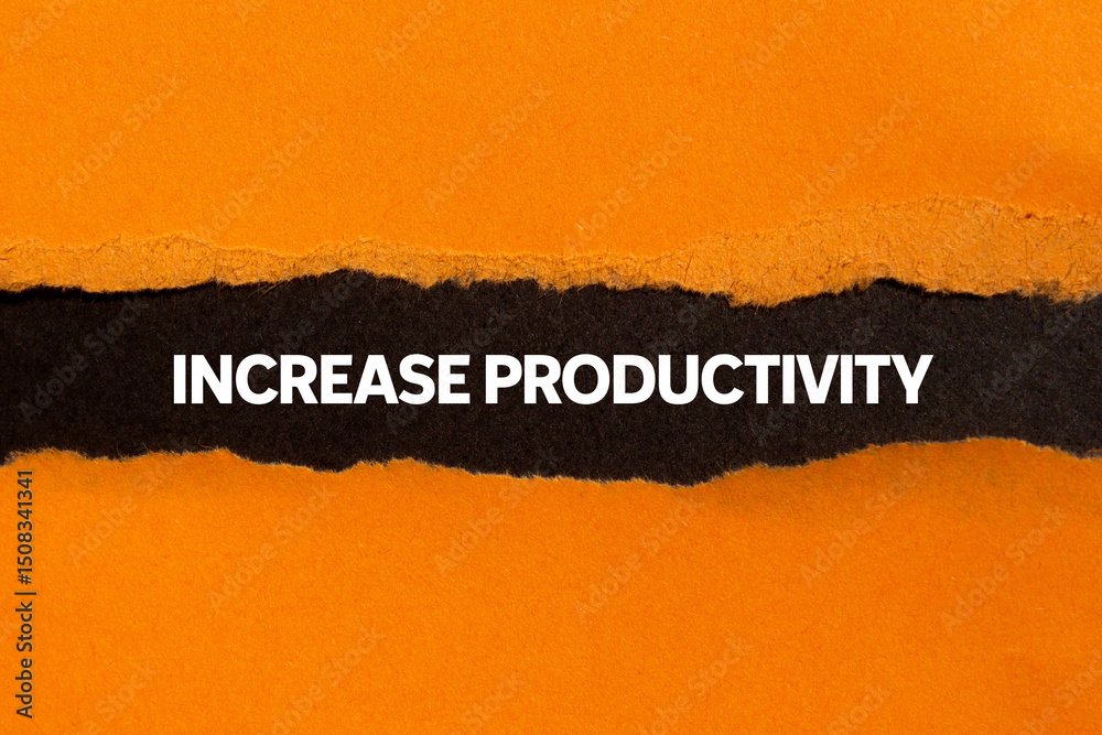 Increase productivity message written on ripped torn orange paper on black background. Conceptual increase productivity symbol. Copy space.