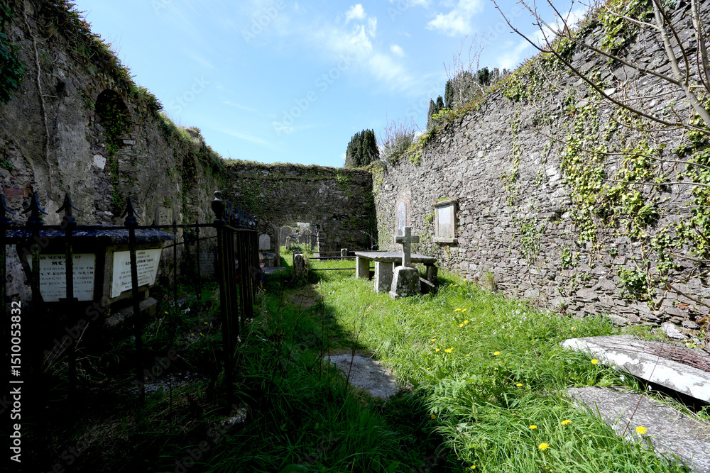 Vieux cimetière de Cobh en Irlande avec tombes anciennes en pierre et croix celtiques