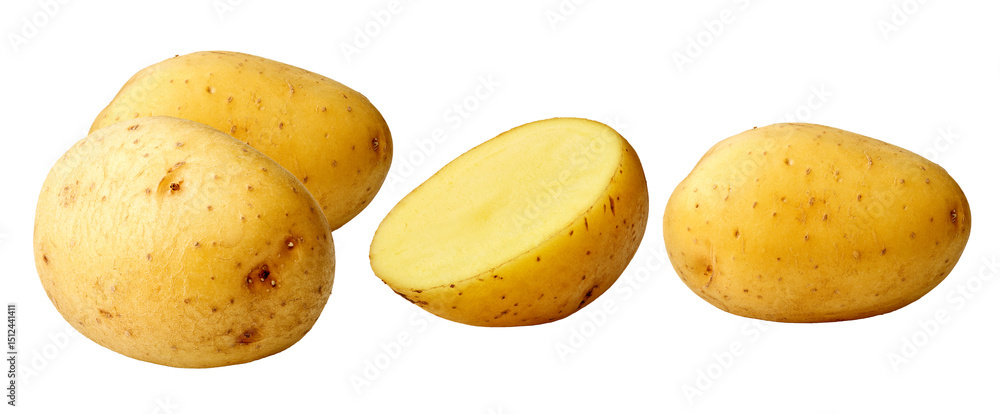 Fresh, raw potatoes on white background. Essential vegetable, a versatile ingredient for various culinary applications and healthy meals. Grocery promotions, food advertising photo, recipe content