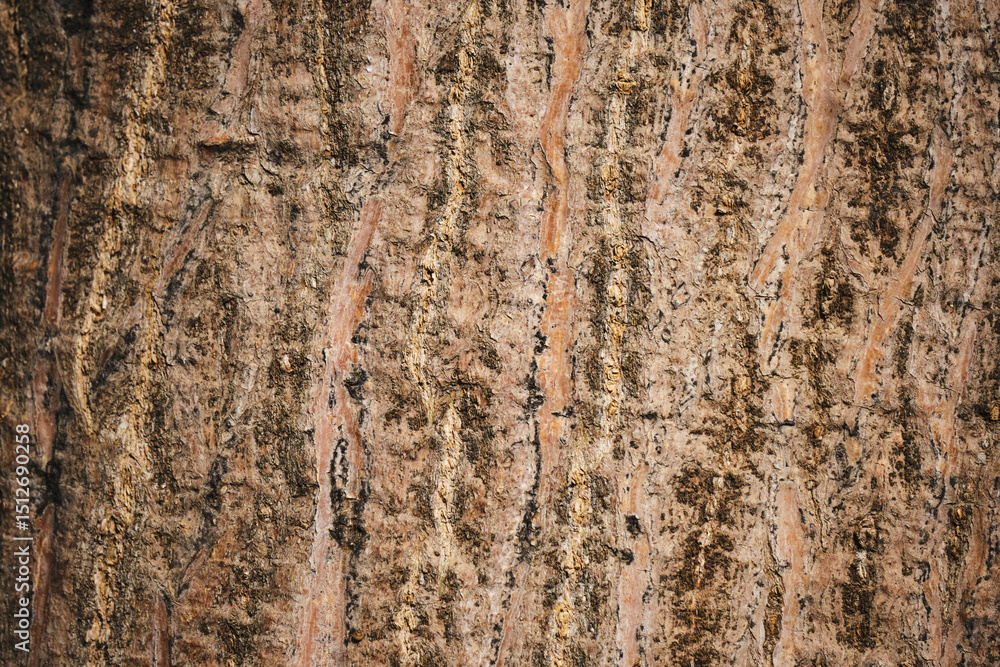 Close-up texture of tree bark with natural patterns and rich earthy tones