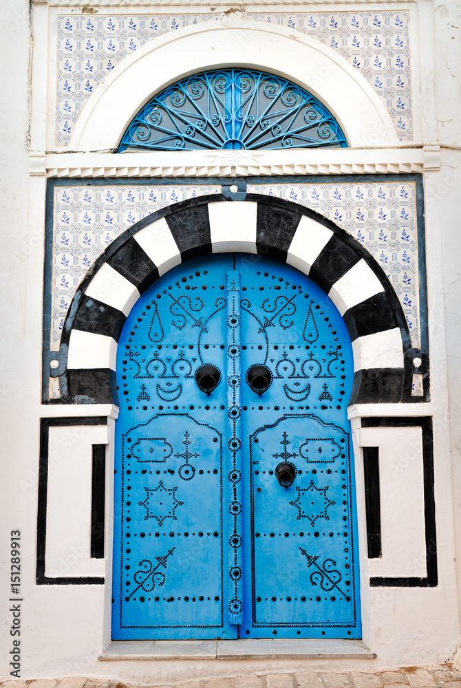 Arched Doorway with Blue Studded Door, Africa, North Africa, Tunisia, Sidi Bou Said