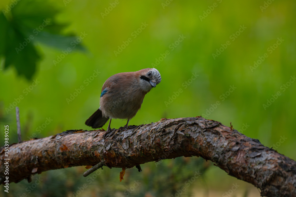 Curious Eurasian Jay Perched on a Pine Branch in a Natural Forest Setting